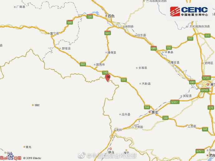 中国地震台网正式测定:11月25日9时18分在广西百色市靖西市(北纬22.89度,东经106.65度)发生5.2级地震,震源深度10千米。