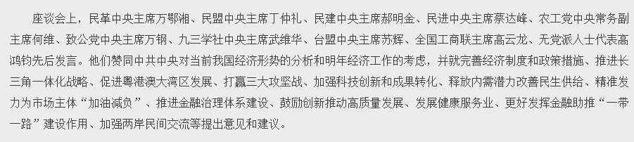 会议还要求,改进领导经济工作的方式方法。在座谈会上,高层也提到,“改进领导经济工作的方式方法,坚持勤俭节约、反对铺张浪费,持续为基层减负,反对形式主义、官僚主义,把资源真正用到发展经济和改善民生上来。”