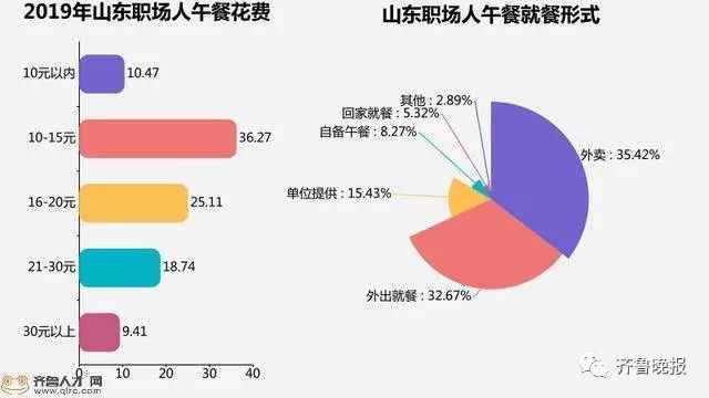 通过数据不难发现,绝大多数职场人在生活上依然拮据,这点在“吃”上最能体现。据调查显示,目前省内41.27%的职场人午餐花费在10-15元;花费16-20元者占比为20.11%;甚至有10.47%的职场人午餐花费不足10元。也就是说山东绝大多数职场人每月午餐花费在500元左右。