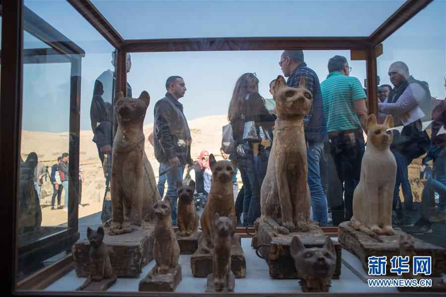 这是11月23日在埃及吉萨省塞加拉地区拍摄的新发现的动物雕像。