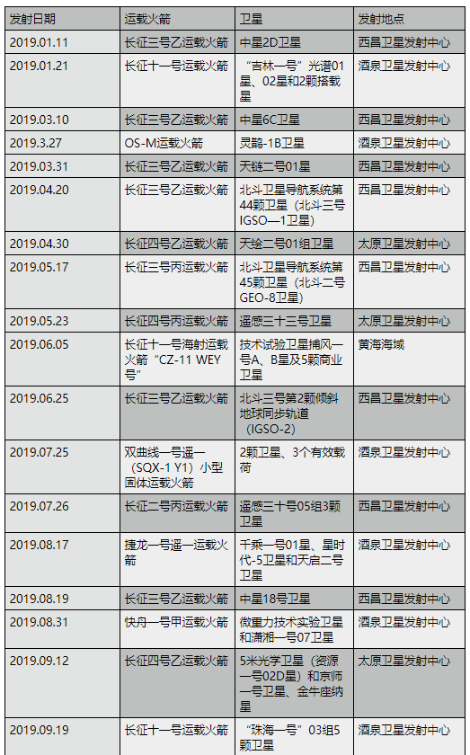 根据Space Launch Report公布的数据,截至12月11日,2019年中国已进行31次火箭入轨发射,其中29次成功将卫星送上预定轨道。