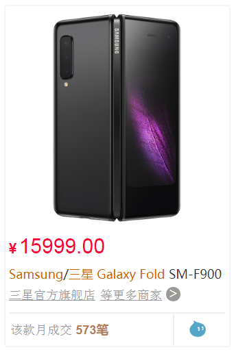 目前,这款折叠屏手机在天猫、京东等三星官方门店均可正常购买。截至发稿,该手机在天猫三星官方旗舰店显示月销量573笔,在京东三星官方旗舰店已累计获1990+评价。