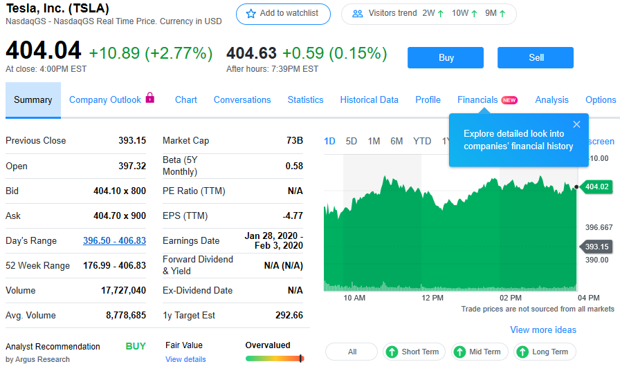 周四收盘时,特斯拉股价上涨2.77%,收于404.04美元,盘中一度涨至406.85美元。这打破了该股周三创下的收盘纪录,当时该股上涨3.7%,收于393.15美元。此前的收盘纪录是2017年9月创下的,当时收于每股385美元。